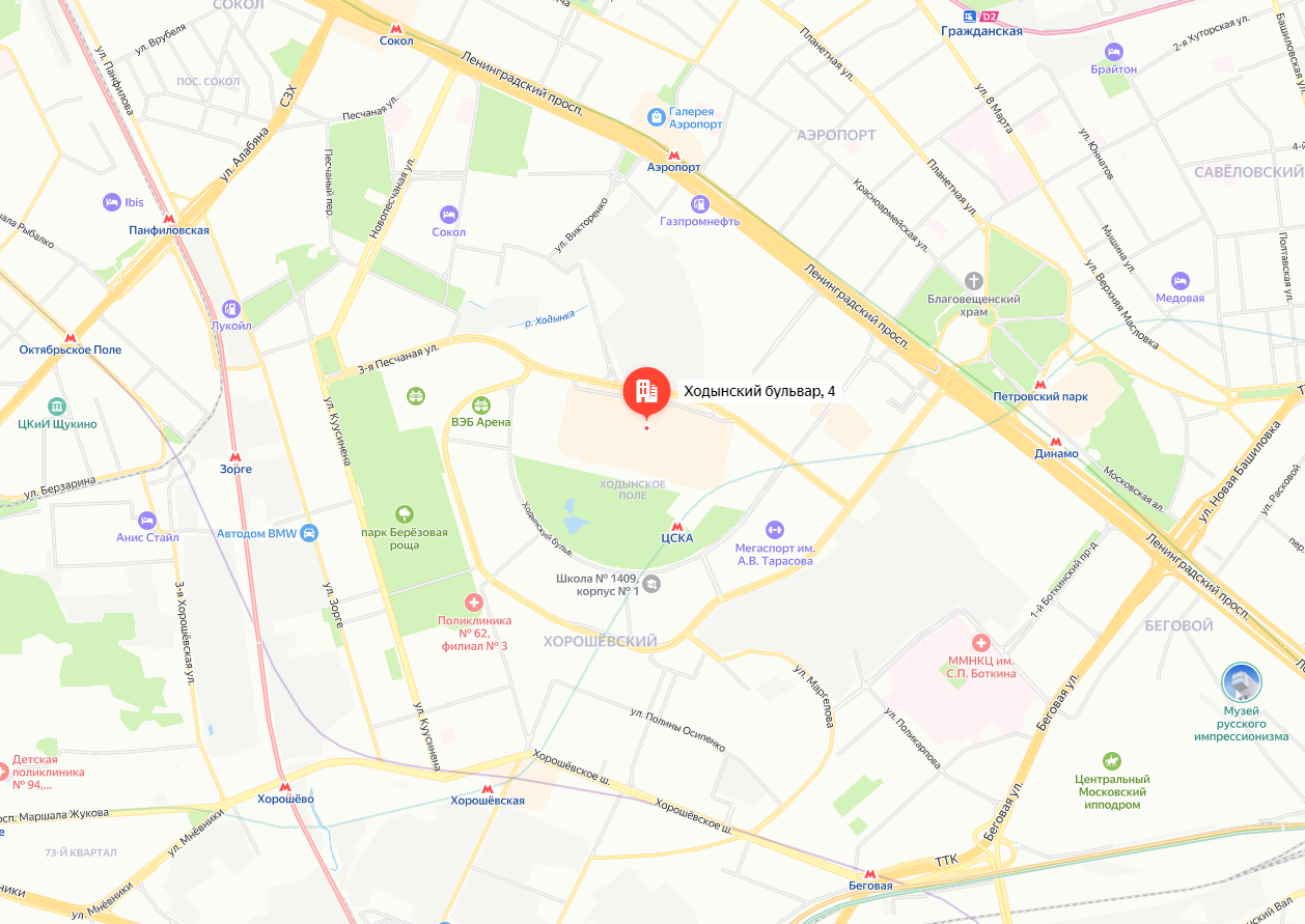 Адрес: г. Москва, Ходынский бульвар, 4